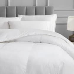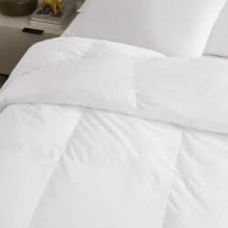 The 400 thread count cotton sateen cover provides a cool, silky hand and a durable downproof weave that holds clusters in place while draping gracefully on your bed.