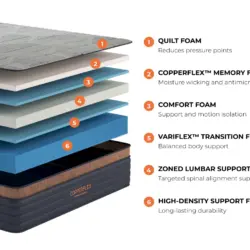 The CopperFlex offers a unique blend of cooling technology and zoned support at a value price point. Whether you choose the foam for isolation or the hybrid for support, it's a solid investment for your sleep health.