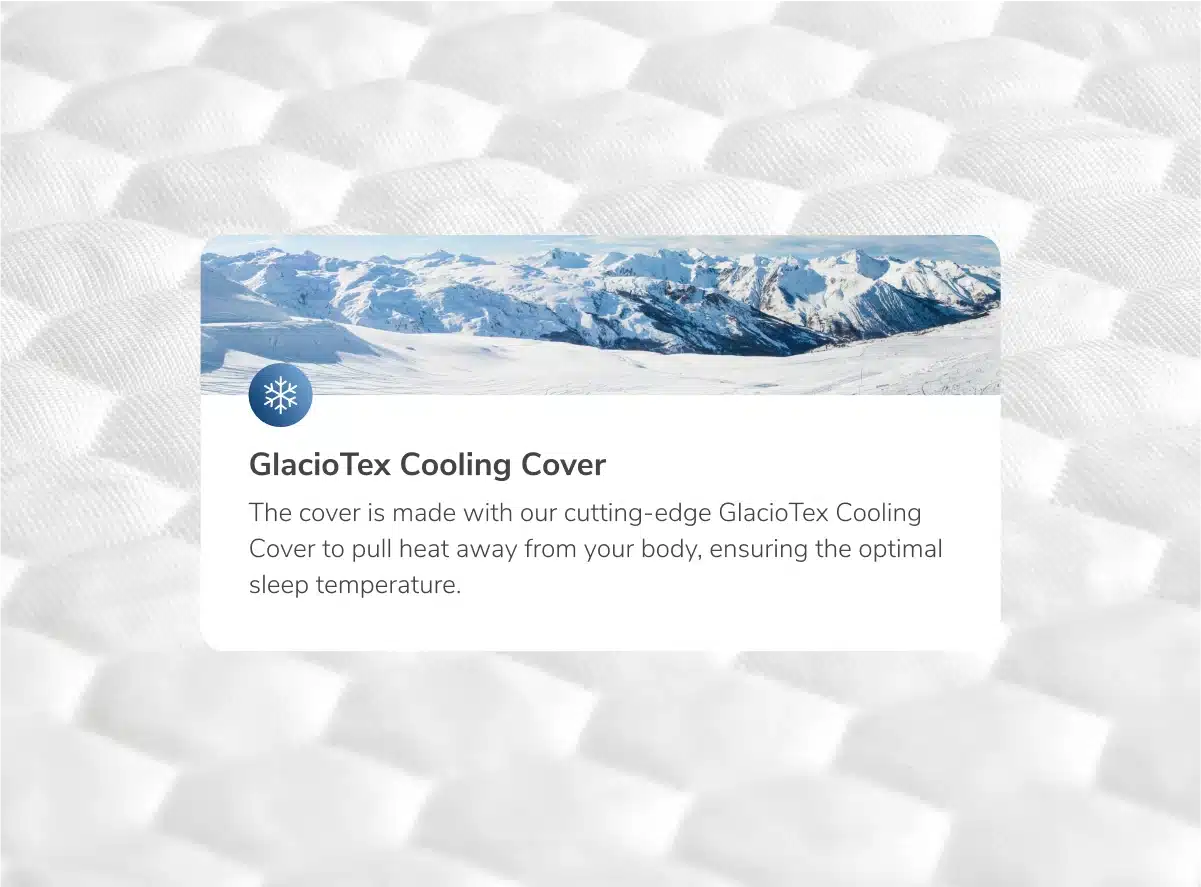 - GlacioTex cooling cover designed to pull heat away for a more comfortable sleep temperature