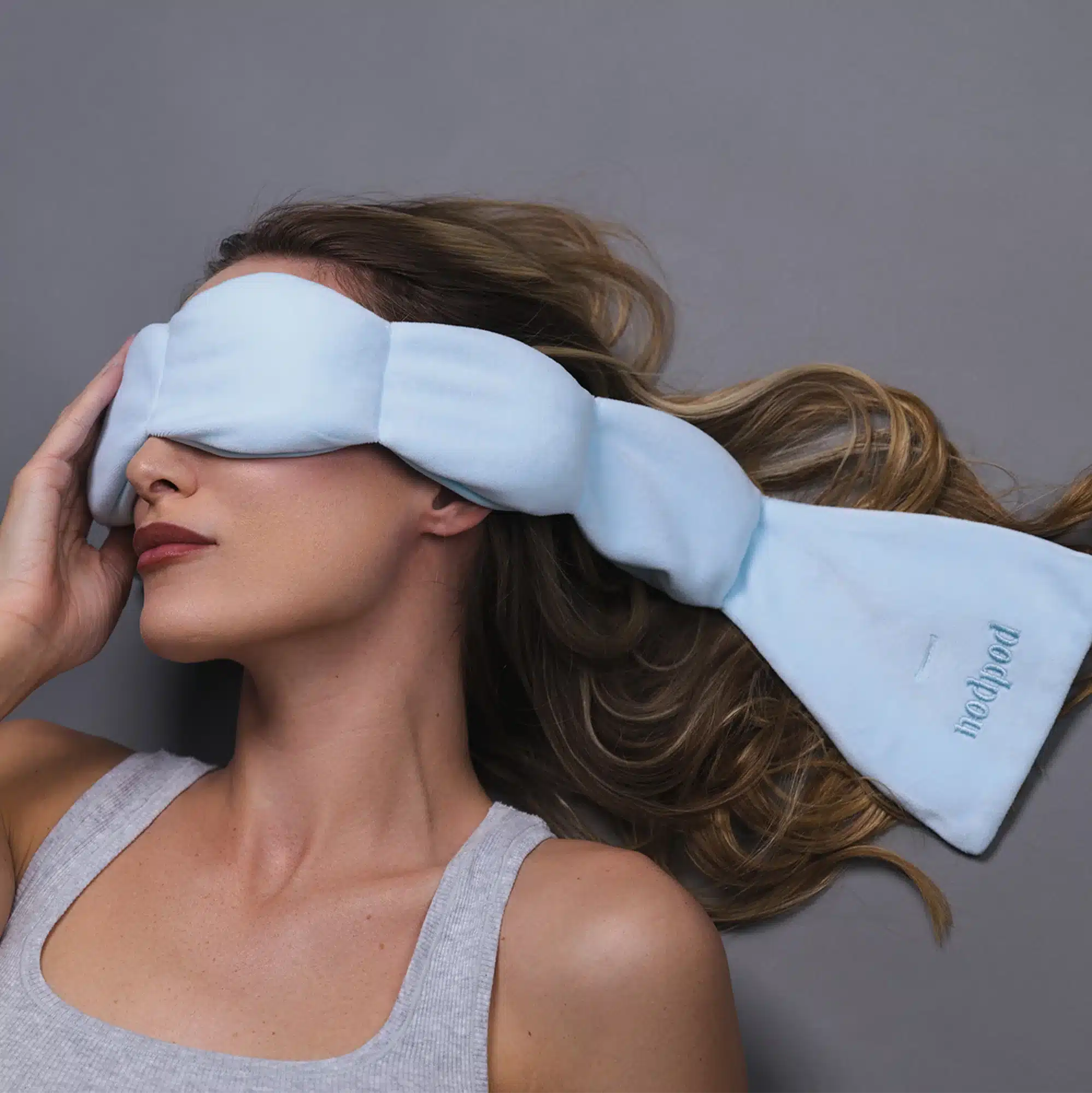 Nodpod relies on deep touch pressure which soothes the nervous system by sending a message of safety. That steady sensory input supports slower breathing and lower heart rate so the mind can settle. Both the sleep mask and the body pod use this principle in lighter cooler forms that work in daily life not just in bed.