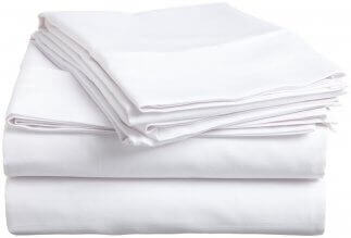 A sheet set comes with a fitted sheet with the cinch fit system, a top sheet, and two pillowcases.